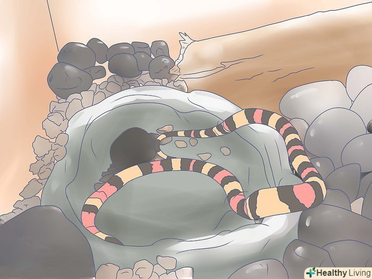 Не забудьте забезпечити змії Обігрів. Нагрівальним елементом повинна виступати керамічна лампочка, навколо якої змія не зможе згорнутися, і в принципі, не зможе підібратися ближче, ніж на 30 см. Будь обігрів повинен бути доповнений термостатом. Занадто спекотне середовище здатне викликати зневоднення, вона може привести до того, що змія перестане зігрівати себе самостійно або зазнає тимчасове неврологічне пошкодження. Для молочної змії підійде денна температура в 25 градусів за Цельсієм, при нічному падінні на 5-7 градусів. Створіть місце, де змія могла б погрітися при температурі в 28-30 градусів. Уважно стежте, чи не проводить ваша змія більше часу на одній стороні, ніж на іншій, і чи не виглядає так, ніби не регулює свою температуру за допомогою різних температурних зон, – підлаштуйте термометр на 2-3 градуси вище, якщо ваша змія "обіймає" джерело тепла.