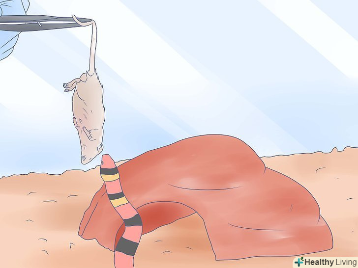 Забезпечте змію їжею. молочні змії добре їдять морожених мишей в будь – якому віці; недавно вилупилися змійок годуєте кожні 7-10 днів, дорослих-кожні 10-14 днів або тоді, коли вони поводяться так, ніби полюють. Якщо можливо, не годуйте змію живою їжею-вона може завдати шкоди.