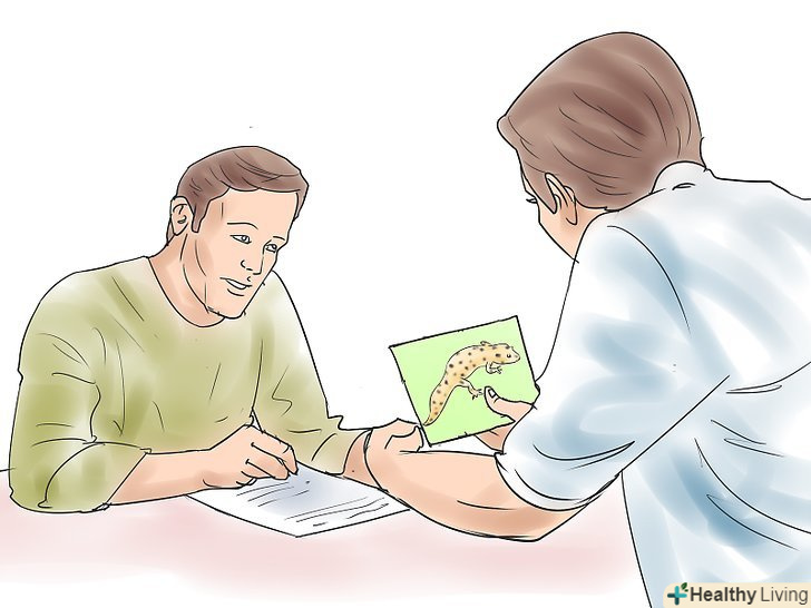 Познайомте самку з самцем. як правило, для цього їх відразу садять в один тераріум. (Якщо самка нездорова, то не варто використовувати її для розведення. Вона може померти.)- Самки повинні бути не молодше 1 року і мати вагу в межах норми. Покладіть в дрібний посуд порошок Кальцій Д3, який при необхідності зможе вживати самка. Вони використовують внутрішні запаси кальцію для формування яєць, і якщо ці запаси виснажуються, самка може померти від метаболічних захворювань кісток.