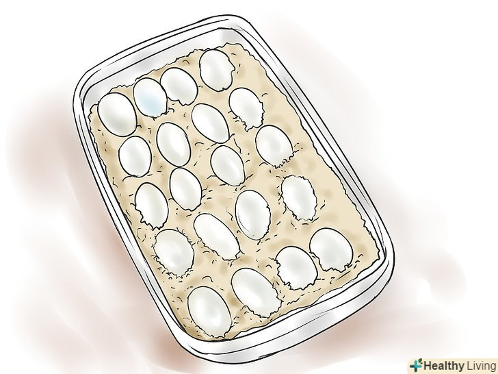 Перекладіть яйця в інкубатор. витягніть яйця з ємності з кладкою, намагаючись не обертати і не трясти їх. Через 24 години після того, як самка відкладе яйця, ембріон прикріплюється до стінки всередині яйця. Обертання або тряска цього яйця можуть привести до того, що ембріон відчепиться від стінки і загине.- Візьміть харчовий контейнер, насипте туди близько 5 см наповнювача (наприклад, перліт) і зробіть пальцем поглиблення в тих місцях, куди ви будете класти яйця.