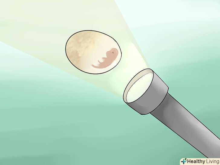 Перевіряйте стан яєць за допомогою овоскопа. щоб перевірити яйця, можна придбати оптоволоконний овоскоп або невеликий світлодіодний білий ліхтарик. Підносите ліхтарик до яйця, але будьте обережні, щоб не натиснути їм на шкаралупу або не перевернути яйце. При цьому висвітиться внутрішній простір яйця. Здорові яйця повинні світитися рожевим і червоним кольором, з невеликою кількістю кровоносних судин. [14]- Якщо яйце світиться жовтим кольором, воно безплідне, померло, або в ньому ще не встиг розвинутися ембріон.
