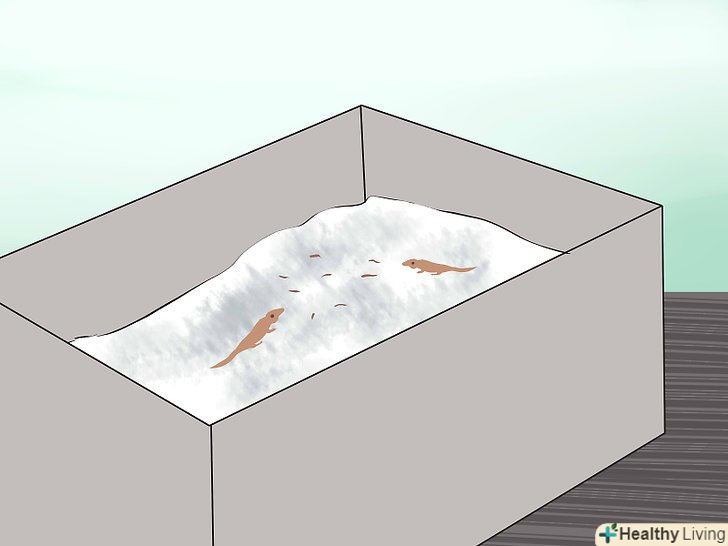 Обладнайте тераріум для вилупилися дитинчат. поки яйця знаходяться в інкубаторі, підготуйте тераріум для молодняка . Запасіться всім необхідним, включаючи корм. Для більшості видів ящірок протягом перших кількох тижнів життя можна використовувати невеликі коробки, вистелені паперовими рушниками.- Простежте, щоб в коробці для молодняка було досить тепло і волого. Дитинчата ящірок зазвичай вилуплюються протягом 24 годин, і необхідно простежити, щоб вони всі вибралися зі своїх яєць. Щоб не виникло проблем, підтримуйте відповідну вологість.