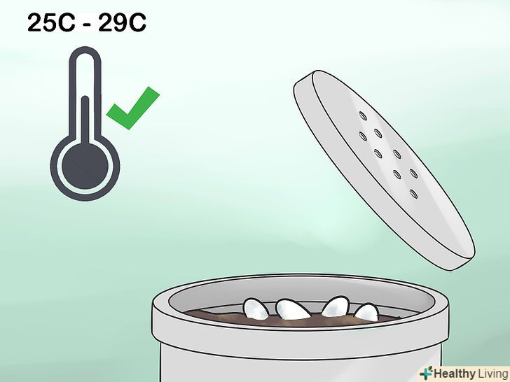 Регулюйте умови в залежності від рівня вологості. якщо яйця і грунт занадто вологі, зніміть з контейнера кришку. Залиште його відкритим на пару днів, поки не випарується зайва волога. Якщо ви помітите, що яйця висихають, додайте в грунт води. Додавайте воду потроху, щоб грунт не став занадто вологим. [13]- Ні в якому разі не лийте воду безпосередньо на яйця. Додайте воду в грунт навколо яєць. Спробуйте використовувати для цих цілей піпетку або мокру ганчірку.