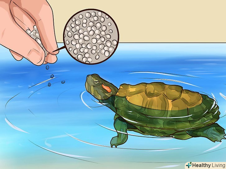 Годуйте водну черепаху у воді. на відміну від звичайних сухопутних черепах, водні черепахи харчуються у воді. Таке харчування для водних черепах є життєво необхідним. Однак розкладання їжі у воді може призвести до проблем. З цієї причини багато людей радять завести другий акваріум для годування, який буде легше чистити після того, як ви нагодуєте черепаху. [11] якщо у вас немає другого акваріума, не забувайте прибирати залишки їжі і стежити за чистотою води.- Годуйте водних черепах живою рибою, щоб вони більше рухалися. [12]