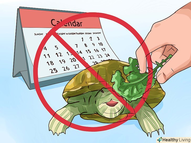 Не годуйте дорослих черепах кожен день. коли черепаха стає старше, її харчові звички зміняться, і її більше не потрібно буде годувати кожен день. У кожної черепахи свої апетити, але дорослих черепах, як правило, потрібно годувати через день або чотири-п'ять днів на тиждень. [7] Черепаха може почати частіше просити у вас їжі. Вона буде робити це незалежно від того, годуєте ви її чи ні, так що дотримуйтеся режиму годівлі. [8]