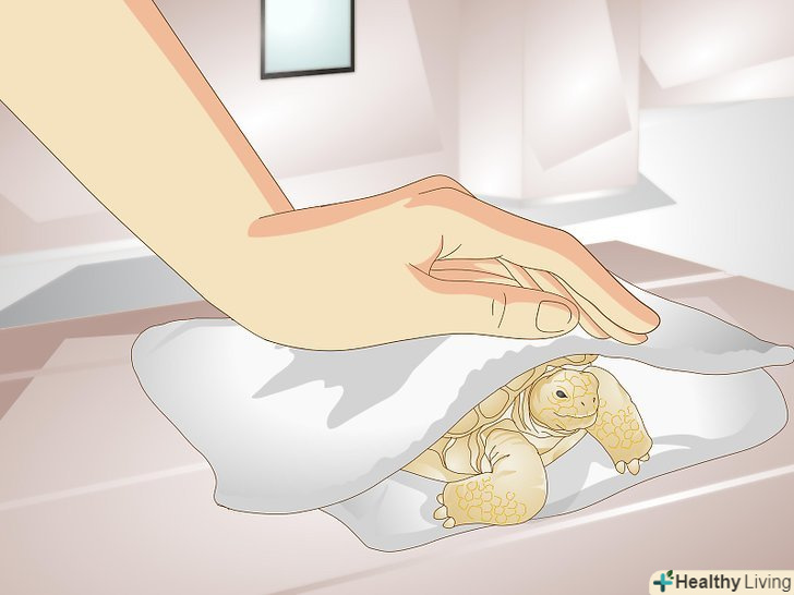 Висушіть черепаху. [14] Візьміть махровий або паперовий рушник і промакніте черепаху насухо. Черепаха не повинна залишатися з вологим панциром і шкірою, коли ви посадите її назад в клітку.