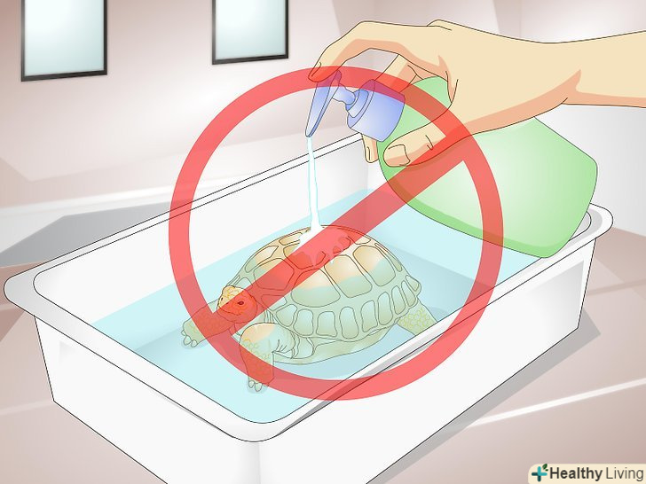 Не використовуйте мило. мило та інші миючі засоби (в тому числі для панцира) погано впливають на здоров'я черепах, а в деяких випадках черепаха навіть може від них померти. Мийте свого вихованця просто чистою водою. [15]