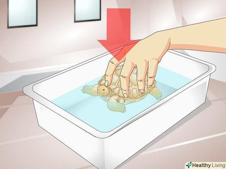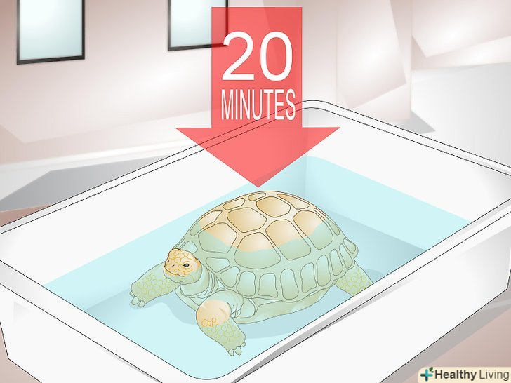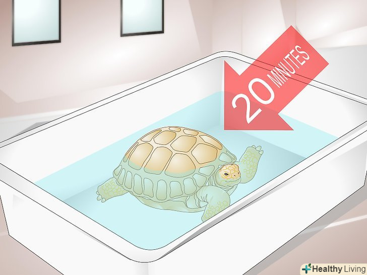 Зачекайте, поки черепаха «нап'ється». Черепахам потрібно перебувати у воді як мінімум 20 хвилин; в будь-якому випадку, якщо черепаха намагається виповзти з ємності, значить, час купання підійшло до кінця. [3]
