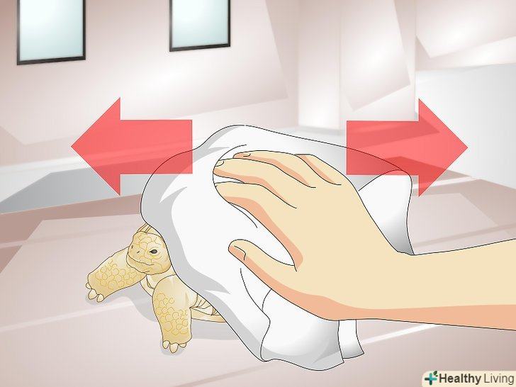 Витріть черепаху насухо. [6] переконайтеся, що черепаха повністю висохла, перш ніж садити її назад в клітку. Візьміть махровий або паперовий рушник або акуратно витріть черепаху губкою. Почніть з панцира, потім протріть акуратними промакивающими рухами голову і кінцівки, зібравши воду з усіх складок шкіри і отворів панцира.