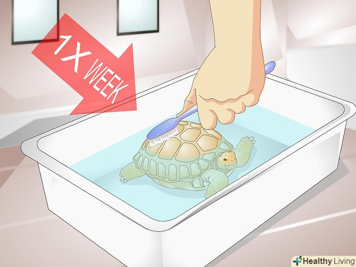 Купайте свою черепаху не рідше разу на тиждень. кількість водних процедур залежить від виду черепахи, пори року і того, де ви тримаєте свою черепаху — на свіжому повітрі або в квартирі. У квартирі, де вологість зазвичай нижче, ніж на вулиці, черепаху потрібно купати як мінімум раз на тиждень. [7] якщо черепаха живе на вулиці, під час спеки їй необхідно купатися двічі на тиждень, а між купаннями їй можна дати висохнути природним шляхом. [8]