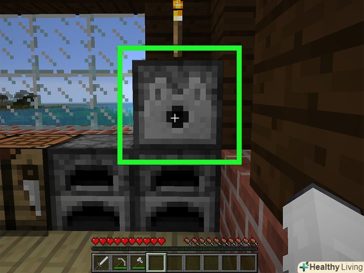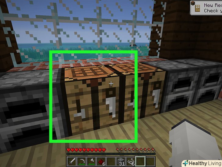 - Якщо у вас немає верстата, створіть його. Для цього натисніть " X " (Xbox) або кнопку з квадратом (PlayStation), прокрутіть чотири пробіли, щоб вибрати сітку крафта, а потім натисніть «A» (Xbox) або «X» (PlayStation). Щоб скористатися верстатом, покладіть його на землю.