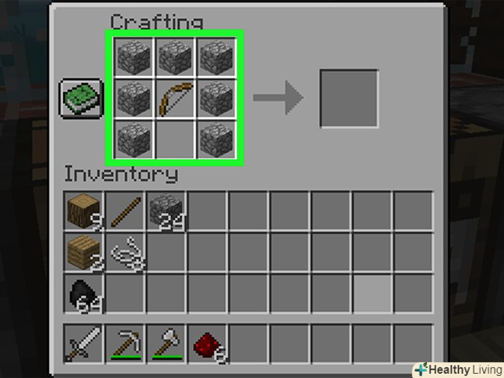 Додайте бруківку.додайте по одному блоку бруківки в кожен слот лівого і правого стовпців, а також один блок у верхній середній слот.