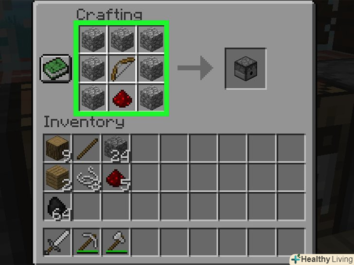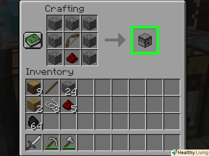Зберіть необхідні матеріали.щоб скрафтіть роздавальник, знадобиться наступне:- Одна червона руда — добудьте один блок червоного каменю. Червоний камінь зустрічається на глибині 16 рівня. Щоб добути червоний камінь, знадобиться як мінімум залізна кирка.