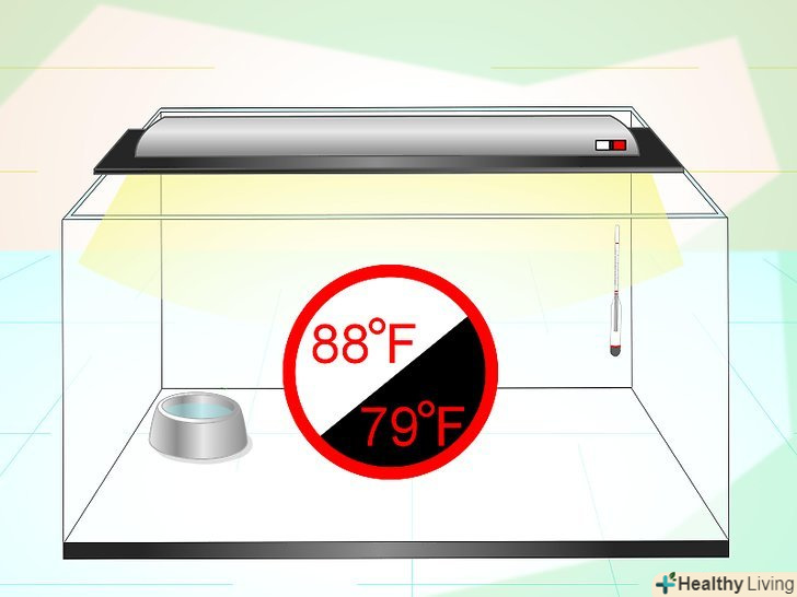 Створіть відповідну температуру. хоча основним джерелом тепла в тераріумі є лампи, можна додати і інші, більш локальні нагрівачі. Правильна регуляція температури в тераріумі вкрай важлива для здоров'я водяної агами. [10] [11]- У денний час температура в тераріумі повинна становити близько 29-31 °С. вночі температуру слід знижувати до 24-26 °С.