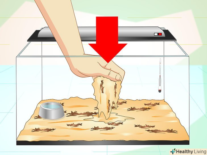 Застеліть дно тераріуму відповідним матеріалом. для цього вам знадобиться органічна підстилка. Водяним агамам потрібна спеціальна підстилка, яка схожа на те, до чого вони звикли в природному середовищі існування. [12] [13]- Найкраще використовувати відносно недорогий матеріал, який легко видалити і замінити на новий.