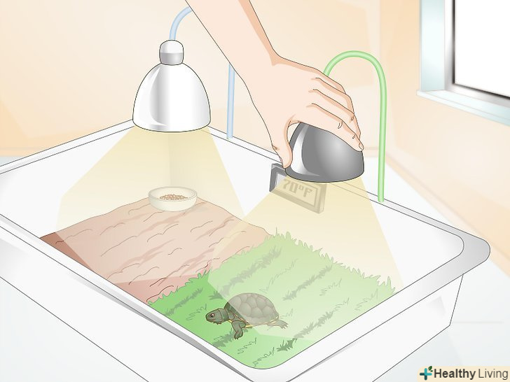 Збільште кількість світла. щоб черепаха їла з апетитом, їй також потрібно достатньо освітлення. Водоплавним черепахам потрібні ультрафіолетові промені спектру A і B. Черепаха повинна 12-14 годин перебувати на світлі і 10-12 — в темряві. [3] сухопутним черепахам потрібно щонайменше 12 годин світла щодня. Це може бути як сонячне світло, так і світло ультрафіолетової лампи або лампи розжарювання. [4]- Якщо світла менше, черепаха може відмовлятися від їжі.