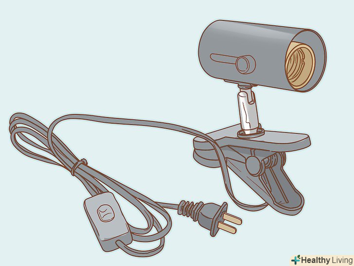Придбайте нагрівальну лампу для акваріума. у природних умовах водяні черепахи не здатні регулювати температуру свого тіла, тому їм необхідне сонячне світло. Встановіть в акваріумі нагрівальну лампу.- Придбайте лампочку потужністю 40 ватт, випромінювання якої покриває Довгохвильовий і середньохвильовий ультрафіолетовий діапазон. Розташуйте лампу приблизно в 25 сантиметрах від того місця, де буде грітися черепаха. [4]