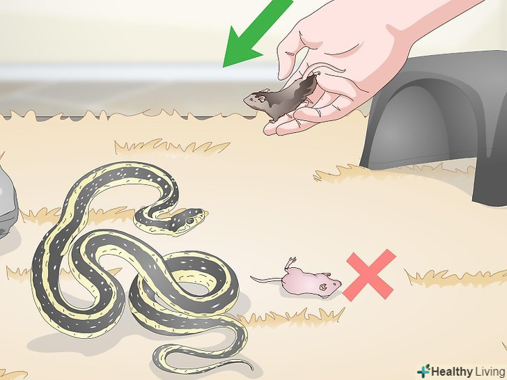 Давайте змії живий корм лише в тому випадку, якщо вона відмовляється їсти мертву здобич. якщо змія як і раніше відкидає мертву здобич, ймовірно, доведеться придбати їй живий корм. У зоомагазині можна купити живих мишей або щурів, яких спеціально розводять як корм для змій. Якщо ви будете давати своєму вихованцеві живу здобич, необхідно стежити, щоб змія зловила і з'їла свою жертву. В іншому випадку гризун в паніці може атакувати змію і серйозно поранити її. [19]