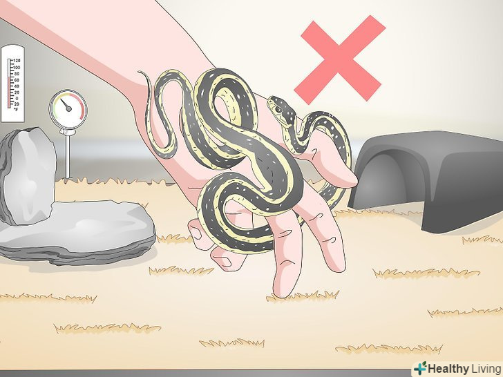 Не беріть змію на руки, коли вона ще перетравлює їжу. Змії заковтують здобич цілком, і якщо ваш вихованець ще не переварив з'їдене, ви помітите потовщення в його тілі. Якщо ви візьмете змію на руки, коли вона перетравлює їжу, то можете заподіяти їй дискомфорт, тому почекайте, поки бугор в тілі зникне. [22]