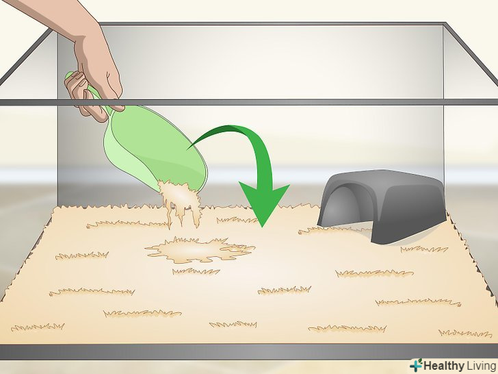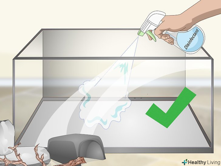 Підтримуйте чистоту в тераріумі. прибирайте з тераріуму сміття і бруд хоча б раз на тиждень, а приблизно раз на місяць повністю чистите його. Кожен день видаляйте з'явилася бруд і міняйте воду. При повному прибиранні дезінфікуйте тераріум і всі знаходяться в ньому предмети. При чищенні обов'язково надягайте рукавички і захисні окуляри, а потім ретельно мийте використані інструменти і руки, так як в тераріумі можуть міститися хвороботворні бактерії, наприклад сальмонела. [27]- Для чищення тераріуму вам знадобляться щітки, відра, нешкідливе для змій Чистячий засіб, паперові рушники, ватяні палички, сито для піску (якщо ви використовуєте в якості підстилки пісок), засіб для миття посуду, губка. [28]