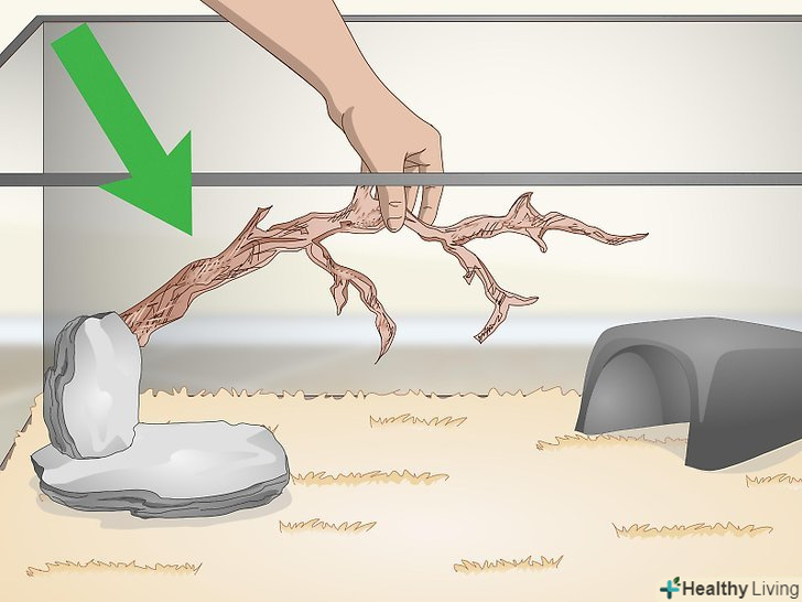 Дістаньте кілька каменів і гілок. зміям необхідно лазити по гілках і грітися на каменях. Цим вони займаються в дикій природі, тому вам будуть потрібні камені і гілки для того, щоб ваш вихованець залишався здоровим і задоволеним. Відповідні гілки і камені можна придбати в більшості зоомагазинів, або просто зібрати на вулиці. [10]- Наземним зміям потрібно кілька каменів, на яких вони зможуть грітися, і одна гілка для лазіння, в той час як тим зміям, які звикли лазити по деревах, наприклад поперечнополосатой королівської змії або маїсовому полозу, знадобиться більше гілок.