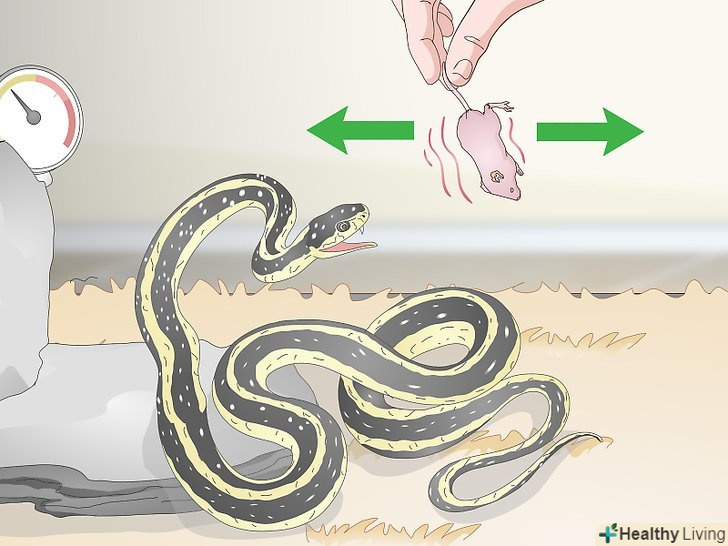 Якщо ваш вихованець не хоче їсти мертву «здобич», поворушіть нею. іноді живуть в неволі змій не цікавлять тушки мишей, і вони відмовляються їсти їх. Якщо ваш вихованець ігнорує їжу, спробуйте поворушити нею перед його мордою. Цього може бути достатньо, щоб привернути увагу змії і спокусити її з'їсти корм. [17]