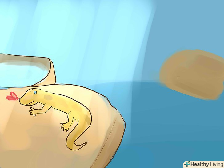 Леопардовому гекону потрібно тепло, щоб перетравлювати їжу.- Найкраще підійде нагрівач, що встановлюється під ємністю. Таким чином, коли гекон поїсть, він зможе лягти на нагрівач і погріти живіт. На нагрівачі, який встановлюється під ємність, є липка сторона. Цю сторону необхідно приклеїти на дно ємності, і підключити нагрівач до розетки. Через кілька годин він повністю нагріється. Вибираючи нагрівач, переконайтеся, що він має розмір рівний половині ємності, щоб гекон міг вибрати гарячу або холодну частину.