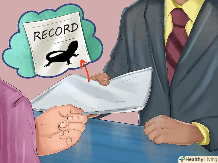 Зв'яжіться з розвідником. Якщо ви хочете дізнатися точний вік бородатої ящірки, зв'яжіться з розвідником, у якого ви її купили. Швидше за все, у нього залишилися докладні записи про народження, де вказано точний день, коли народилася ящірка. [1]- У розвідника також можуть бути й інші відомості про ящірку, на зразок історії хвороби, віку батьків, середньої тривалість життя ящірок і того, як правильно доглядати за бородатою ящіркою; крім іншого, він може дати корисні поради щодо того, як визначити вік і стать ящірки.