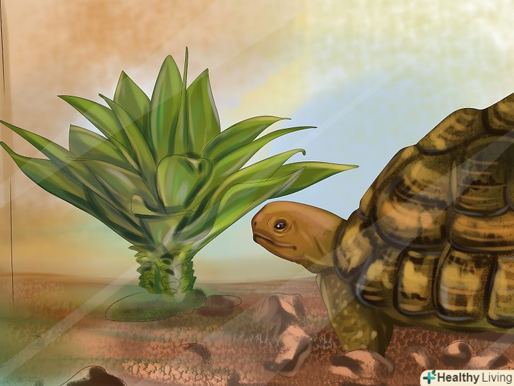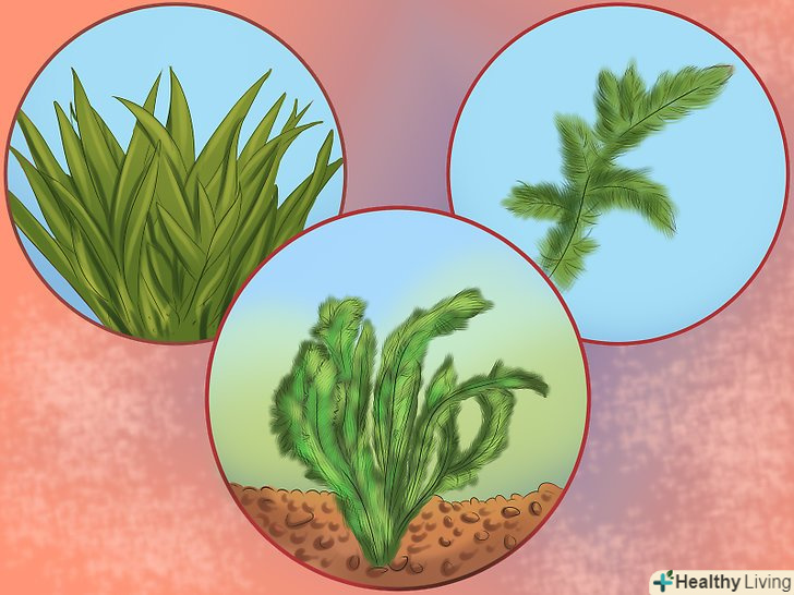 Посадіть в субстрат живі рослини. наявність рослин в акваріумі не обов'язково, але деякі вважають, що вони створюють більш природне середовище проживання, яке піддає молоду черепаху меншому стресу. Також Акваріумні рослини допомагатимуть очищати воду, споживаючи забруднюючі речовини і змагаючись з водоростями за вуглекислий газ, який необхідний їм для росту. Тільки обов'язково підберіть такі рослини, які підійдуть саме вашому виду черепахи. [16]- Елодея добре росте при поганому освітленні і перешкоджає росту водоростей. Вона підходить для акваріумів з замикаються і мускусними черепахами, тоді як живляться водними рослинами черепахи (наприклад, червоновухі, ієрогліфові і розписні черепахи) просто знищать елодею.