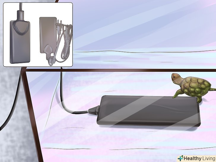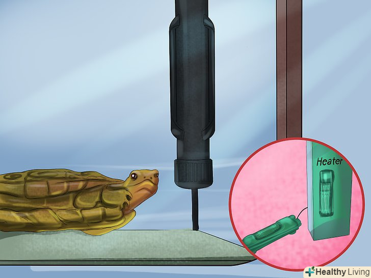Встановіть в акваріум водонагрівач. Черепахи не вміють самостійно регулювати температуру тіла, тому для них необхідно підтримувати певну температуру води, встановивши спеціальний акваріумний водонагрівач. У більшості випадків недавно вилупилися черепашатам необхідна вода з температурою близько 25,5-27,5°C. проте, обов'язково перевірте конкретні вимоги до змісту саме Вашого виду водної черепахи. [4]- Переконайтеся в тому, що зовнішня оболонка водонагрівача виконана з пластика або металу, але не зі скла, так як черепахи здатні поламати його.