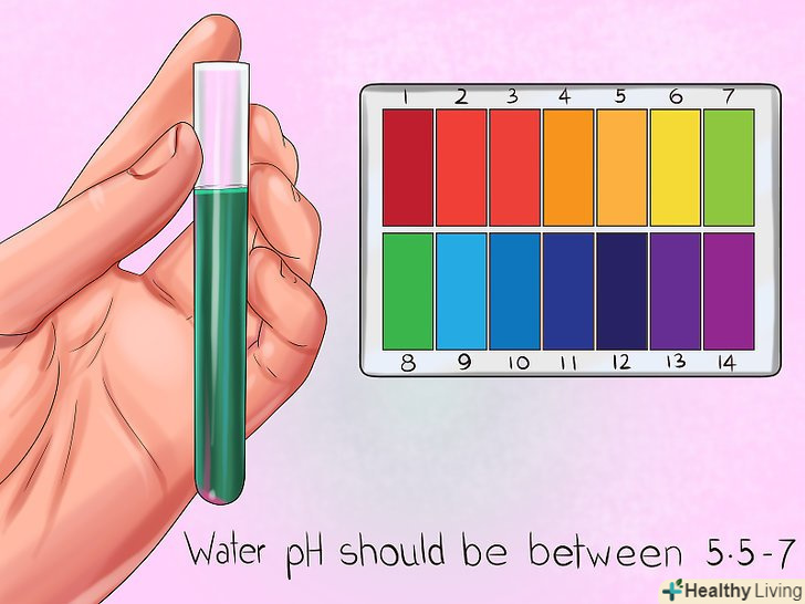 - Рівень pH, яким вимірюється кислотність або лужність води, повинен знаходитися в межах 5,5-7 одиниць. Придбайте в зоомагазині набір для тестування pH і з його допомогою перевіряйте воду протягом першого місяця приблизно кожні 4 дні, щоб забезпечити підтримку необхідного рівня pH.