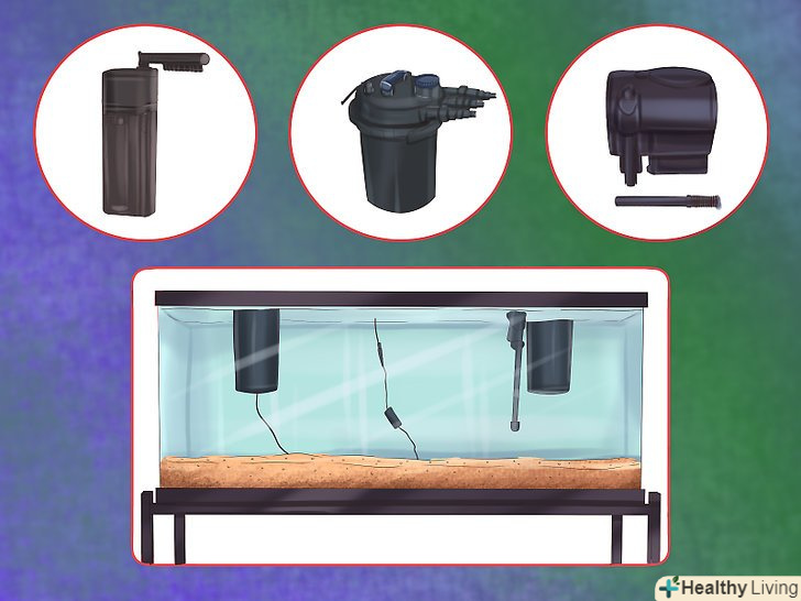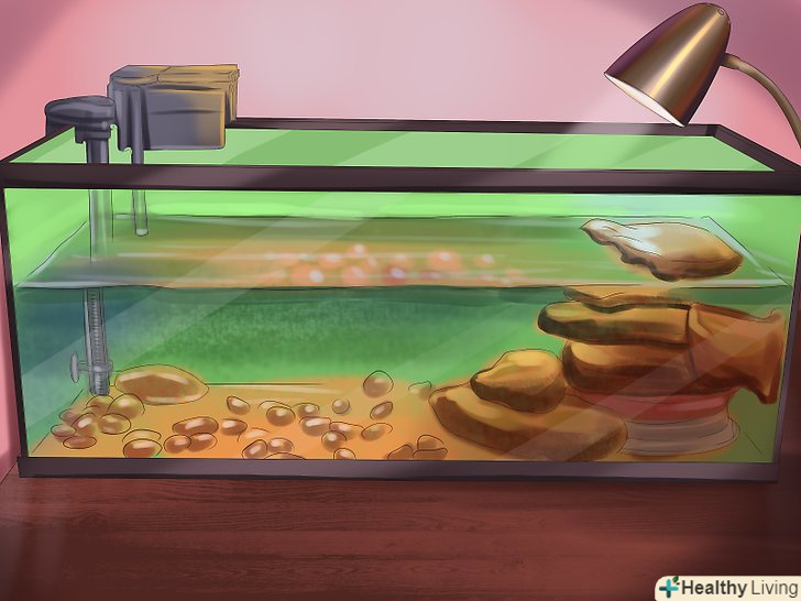 Забезпечте Акваріум фільтром, щоб зменшити частоту підміни води. Черепахи менш охайні, ніж риби і виробляють дуже багато екскрементів. Без фільтра вам доведеться щодня міняти воду в акваріумі, щоб захистити вихованця від захворювань. З фільтром часткові підміни води потрібно вже раз в 2-5 днів, а повна її зміна буде необхідна кожні 10-12 днів. [9] для акваріумів з черепахами випускають спеціальні фільтри, але також можна використовувати і звичайні акваріумні фільтри для риб, тільки призначені для акваріумів в 3-4 рази більшого розміру, ніж ваш (інакше вони не впораються з тим ступенем забруднення води, яку створює черепаха). [10] нижче розглянуто кілька різних видів акваріумних фільтрів. [11] [12]- Внутрішні акваріумні фільтри зазвичай кріпляться на присосках до внутрішньої стінки акваріума і вважаються занадто слабкими для акваріумів об'ємом більше 75 л.однак в акваріумах більшого обсягу їх можна використовувати для забезпечення циркуляції води.