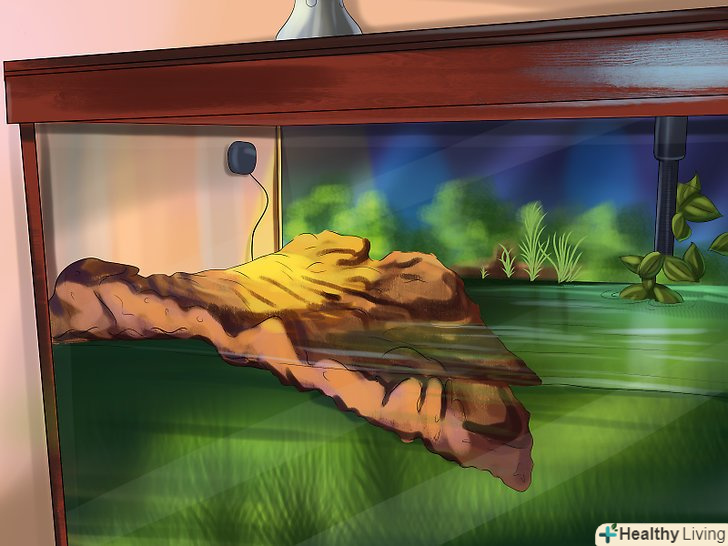 Обладнайте в акваріумі ділянку суші, на який черепаха зможе повністю вибиратися з води. це може бути корч, великий камінь або спеціальна плаваюча підставка. Переконайтеся в тому, що вийшов сухий ділянку досить великий за розміром і має пологий схил, за яким черепасі буде зручно вибиратися з води на сушу. [7]- Площа суші повинна займати приблизно чверть поверхні акваріума.