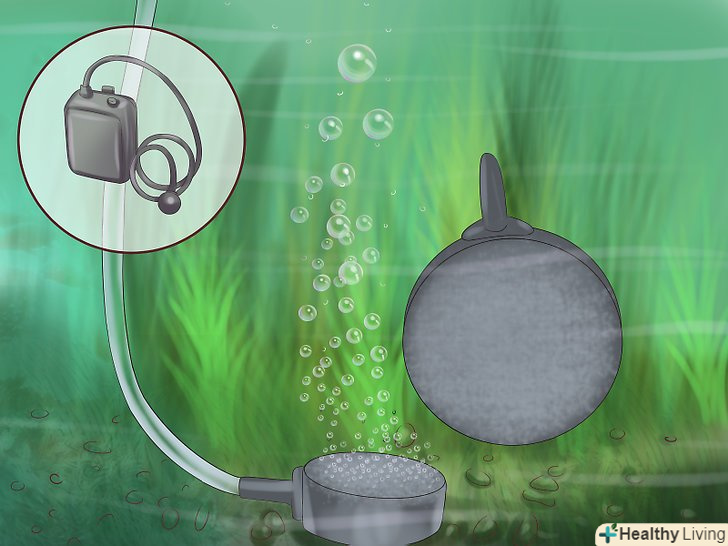 Забезпечте аерацію води повітряним компресором з насадкою-аератором. забезпечення води киснем буде стримувати зростання анаеробних бактерій, які забруднюють акваріум і ставлять під загрозу здоров'я черепахи. [14]