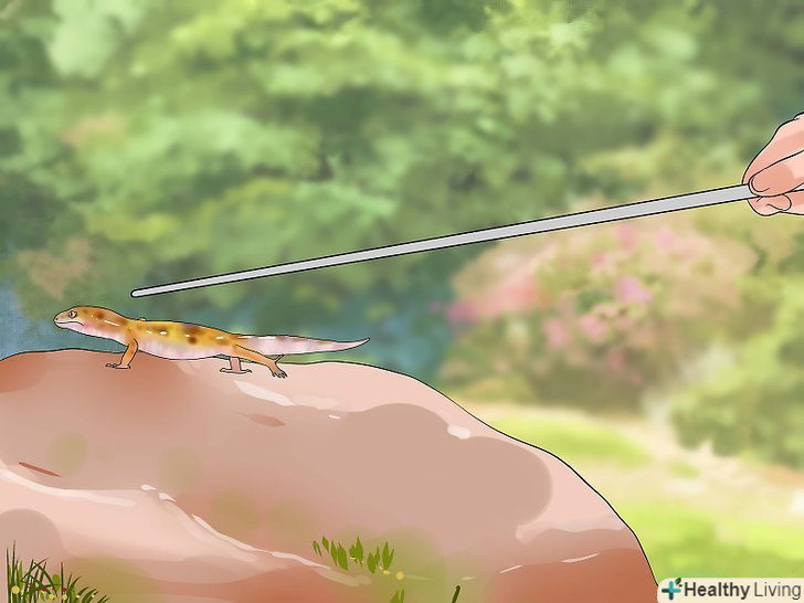 Використовуйте палицю. за допомогою палиці можна змусити гекона побігти в потрібному вам напрямку.- Обережно помістіть палицю позаду гекона.