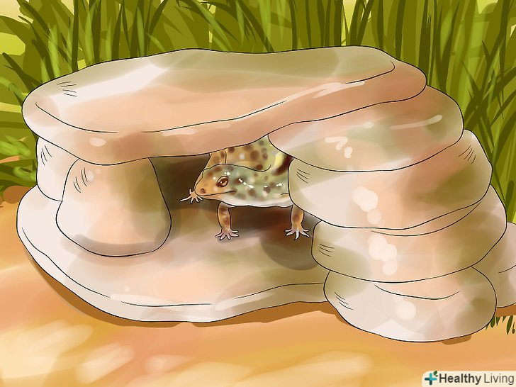 - У будиночку у гекона повинні бути рослини або невеликі предмети, за або під якими він може ховатися. [31]
