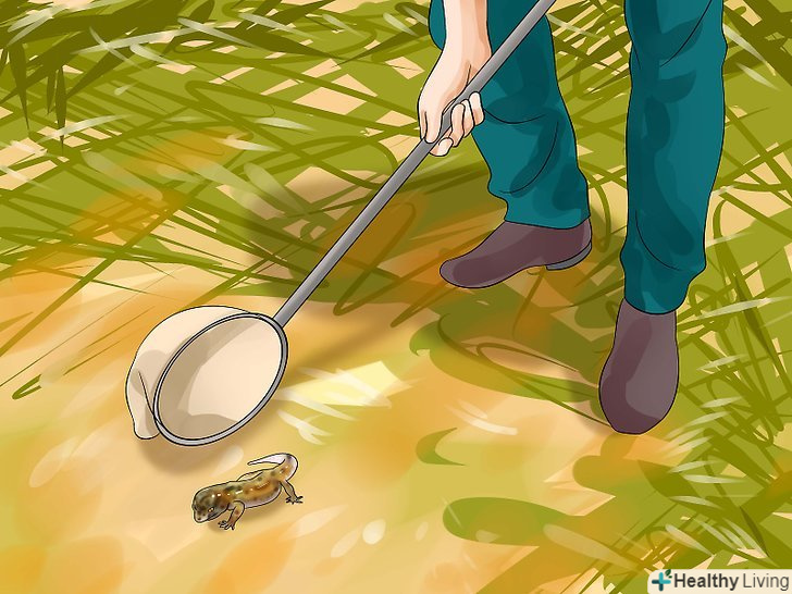 Використовуйте сачок. ловити гекона найзручніше сачком на довгій ручці. З його допомогою ви зможете накрити гекона, не злякавши його. [24]- Тримайте сачок в повітрі над тим місцем, де сидить гекон.