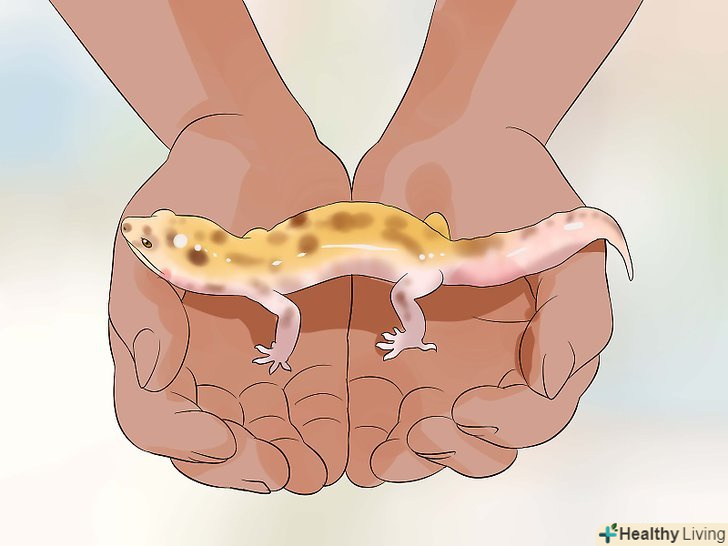 Дайте гекону до вас звикнути. як тільки гекон адаптується до умов свого утримання, можна почати привчати його до рук. Дозвольте гекону вільно бігати по ваших долонях і перебиратися з однієї долоні на іншу. Відведіть на це 10-15 хвилин в день. [29]