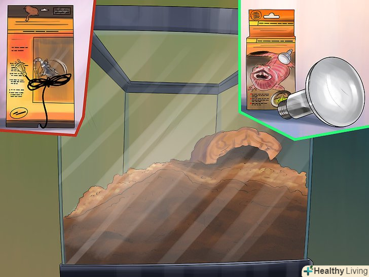 Забезпечте в тераріумі відповідну температуру. в акваріумі зі сцинком один його кут повинен бути прохолодним, а інший — теплим. Рептилії піднімають і опускають температуру власного тіла за допомогою переміщення між зонами з відповідною температурою. [3]- Одна зона в акваріумі повинна бути лише трохи тепліше кімнатної температури. Кілька ультрафіолетових ламп на більш прохолодному кінці акваріума будуть підтримувати там належну температуру. Тільки не ставте сам акваріум там, де протягом дня він буде занадто сильно остигати або нагріватися.