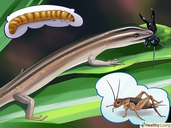 Годуйте сцинка комахами. Сцинки переважно харчуються комахами. Придбати кормових комах можна в зоомагазинах. Якщо в найближчому зоомагазині комах не виявиться, їх можна буде замовити через Інтернет. [6]- Кормові комахи і цвіркуни повинні складати основу харчування вашого сцинка. Періодично також можна давати сцинку личинок і опаришів.