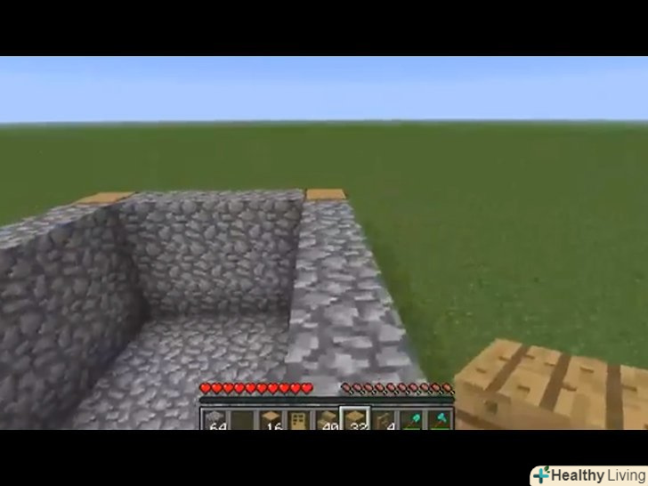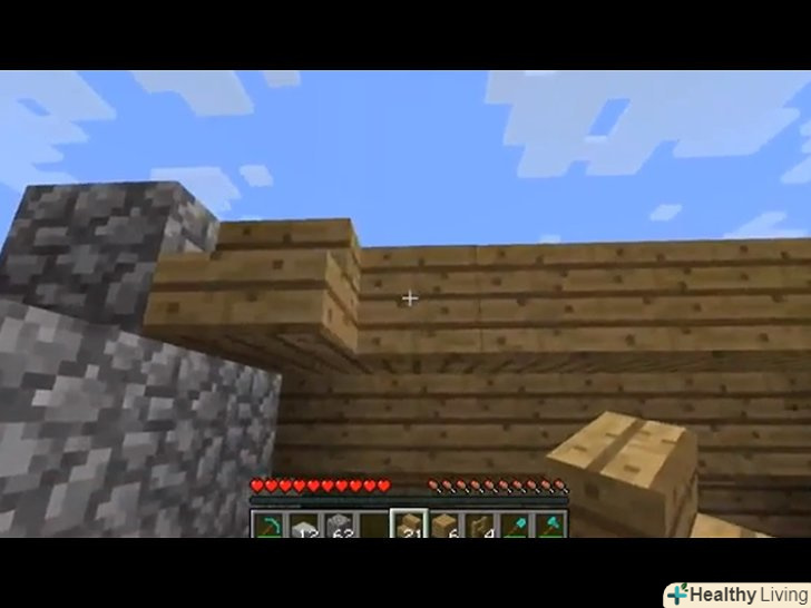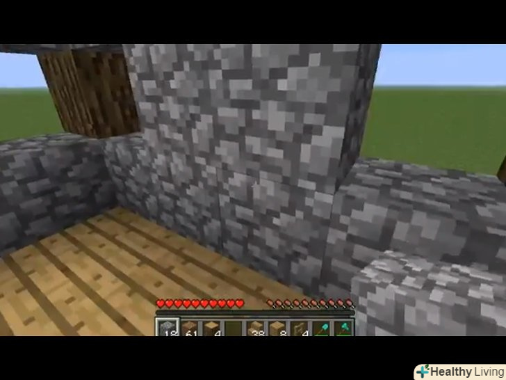 Побудуйте стіни.ідеальний розмір для будинку, це 7 на 7 блоків, так як ви можете поставити двері в середині. Рекомендована висота будинку, це 4 блоки.