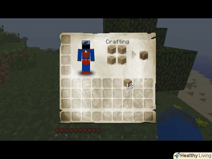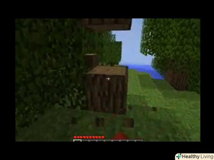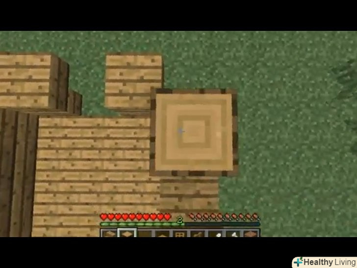 Зберіть дерево, вирубуючи дерева сокирою.залежно від розміру вашого будинку, вам знадобитися від 50 до 100 дерев'яних блоків, для звичайного, маленького будинку.