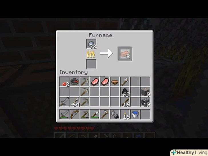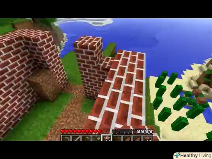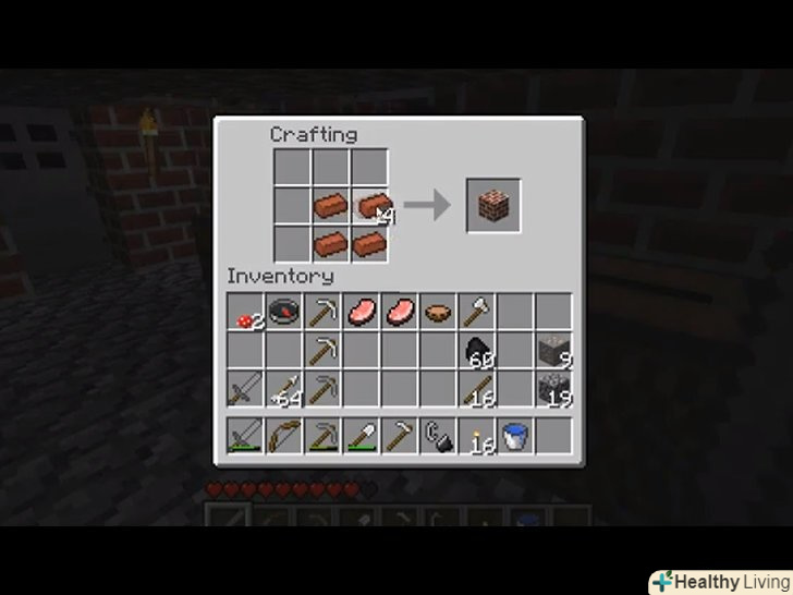 Збирайте цеглу, обпалюючи глину і вугілля разом.для початківця, крафтинг цього матеріалу може виявитися трохи просунутим, але все одно можливим. Щоб обпалити його, вам знадобитися грубка, яку можна знайти в селах NPC, або яку можна скрафтіть, використовуючи 8 кругляків (залишивши центральний квадрат верстата порожнім).- Щоб отримати цегельний блок, вам потрібно скрафтіть разом 4 цегли в квадраті.