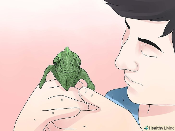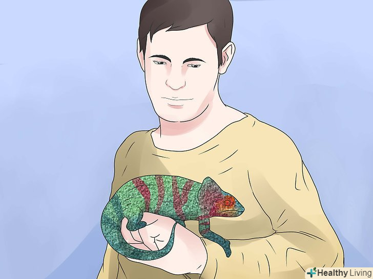 Спілкуйтеся з хамелеоном. хоча можна обійтися і без цього, спілкування з вихованцем принесе вам багато радості. У кожного хамелеона свій характер і звички, одним з них більше подобається спілкування з людьми, ніж іншим. Годуєте свого вихованця з руки-таким чином ви налагодите з ним контакт і уникнете агресивного ставлення. Крім того, деяким хамелеонам подобається, коли їх виносять поніжитися на сонці.- Навчіться робити це безпечним чином, щоб не втратити свого вихованця, який вміє добре маскуватися.