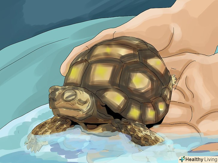 Занурюйте у воду вашу маленьку черепаху кілька разів на тиждень. Черепахам потрібна вода, особливо коли вони ще маленькі. Коли ви в перший раз принесете черепаху додому, вам слід занурювати її в воду по кілька разів на тиждень, щоб вона відчувала повну гідратацію, стежачи за тим, щоб вона не занурювала в воду голову. Зазвичай, після того як черепаху намочили і вона відчуває себе добре, вона негайно починає пити воду. Це означає, що все йде нормально. Пам'ятайте, що більше - це не завжди багато, коли мова йде про купання вашої черепахи. Сухопутних черепах зазвичай купають раз на тиждень 15-30 хвилин.