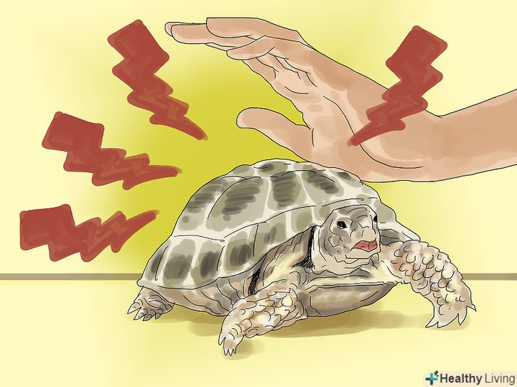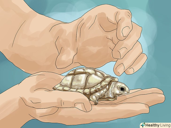 Поводьтеся з черепахою дбайливо. ніколи не кидайте її; якщо зламається панцир, вони вмирають. Також ніколи не тисніть на панцир. Панцир дуже близько прилягає до хребта черепахи з мінімальною кількістю тканин між кістками і панциром. Тиск і удари по панциру завдають черепахам сильний біль. Хоча ви можете вмирати потримати свою черепашку, вам слід заспокоїтися з приводу цього і не дозволяти іншим її тримати занадто багато. Це може напружувати вашого улюбленця і привести до бездіяльності.- Якщо поруч є маленькі діти, поясніть їм, що краще буде, якщо вони будуть любити і піклуватися про черепаху на відстані. Занадто багато уваги може налякати черепаху.
