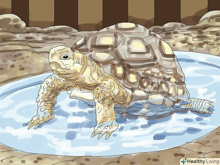 Забезпечуйте свою черепаху водою. важливо, щоб у вашої черепахи було достатньо води, щоб у неї були сили, і не було зневоднення. Ви можете просто налити трохи води в дрібний лоток або блюдце і втопити його в підлогу обгородженого місця так, щоб черепаха не могла його перевернути. Він повинен бути досить дрібним, щоб ваша черепаха з легкістю могла стояти в ній і опускати голову, при цьому не занурюючись повністю в воду. [5]- Міняйте воду кожен день. У вашої черепахи повинна бути власна чашка з водою, незалежно від того, чи живе вона в приміщенні або поза ним.