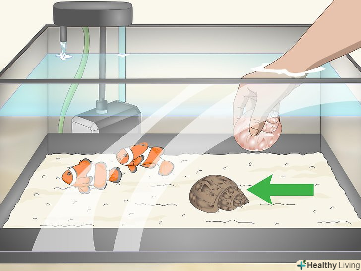 Додайте в акваріум по дві морські черепашки на кожні 4 л води. морські черепашки містять в собі карбонати, які поступово підвищують pH води, коли занурені у воду. Купуйте необроблені морські черепашки в магазині товарів для рукоділля або в зоомагазині і ретельно сполосніть теплою водою. Помістіть в акваріум по дві чисті черепашки на кожні 4 л води. Морські черепашки розчиняються дуже повільно, тому почекайте не менше тижня, перш ніж знову перевіряти рівень pH . [7]- Ніколи не кладіть в акваріум черепашки, які були покриті лаком або пофарбовані.