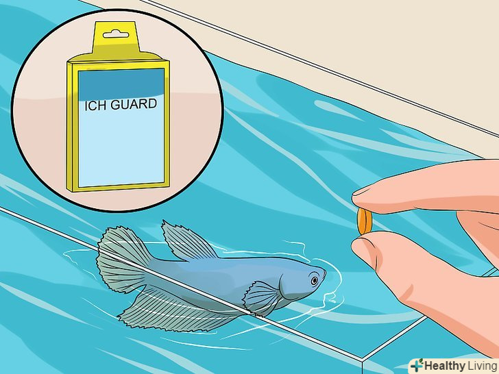 Для лікування іхтіофтіріозу використовують іхтіофтіріцід або подібне йому засіб. дані ліки можна придбати в зоомагазині. Також іхтіофтіріоз можна вилікувати підняттям температури в акваріумі, якщо його обсяг становить більше 20 літрів. Не слід піднімати температуру в акваріумах меншого розміру, так як можна випадково погубити рибу перегрівом. [11]- Поступово піднімайте температуру у великому акваріумі до 29,5 °C, щоб не викликати у риб шок від різкого її перепаду. Це дозволить вбити паразита.