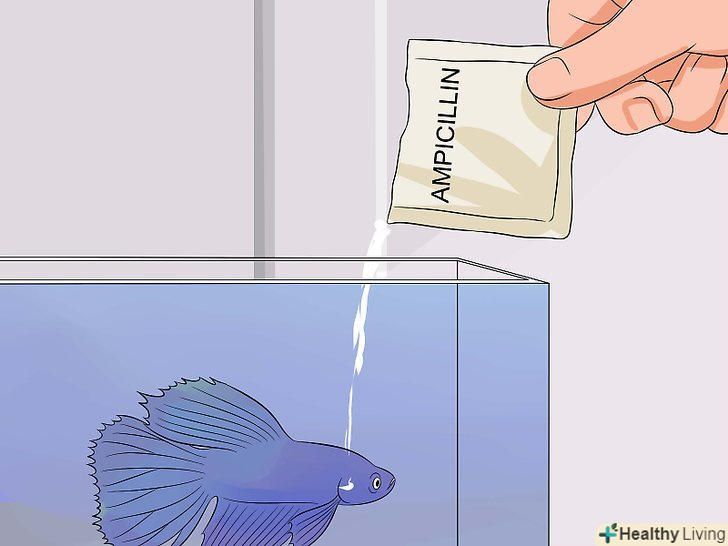 Позбавтеся від грибка за допомогою ампіциліну або тетрацикліну. дані ліки дозволяють вбити грибок і запобігти розвитку грибка, що викликає плавниковую гниль. Вам слід повністю почистити акваріум і зробити повну зміну води. Свіжа вода повинна бути оброблена ампіциліном або тетрацикліном, а також спеціальним протигрибковим засобом. [12]- Вам буде необхідно продовжувати чистити акваріум і виробляти повну підміну води кожні три дні, завжди додаючи при цьому ліки в воду, щоб гарантовано позбутися від грибка. Коли півник перестане втрачати тканини плавників і хвоста, можна буде повернутися до звичайного режиму утримання акваріума.